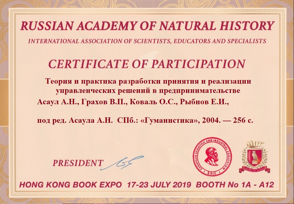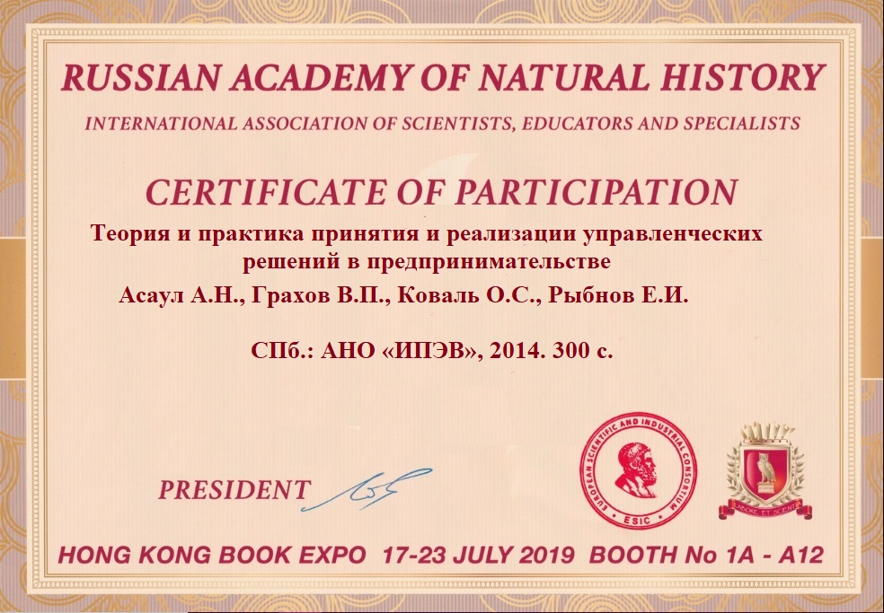 - Асаул А.Н., Грахов В.П., Коваль О.С., Рыбнов Е.И., под ред. Асаула А.Н. Теория и практика разработки принятия и реализации управленческих решений в предпринимательстве