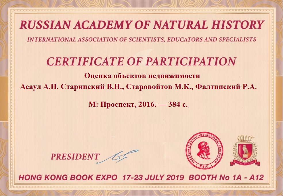 - Асаул А.Н. Старинский В.Н., Старовойтов М.К., Фалтинский Р.А. Оценка объектов недвижимости