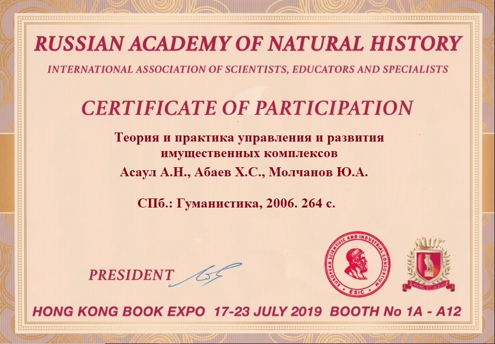 - Асаул А.Н., Абаев Х.С., Молчанов Ю.А. Теория и практика управления и развития имущественных комплексов