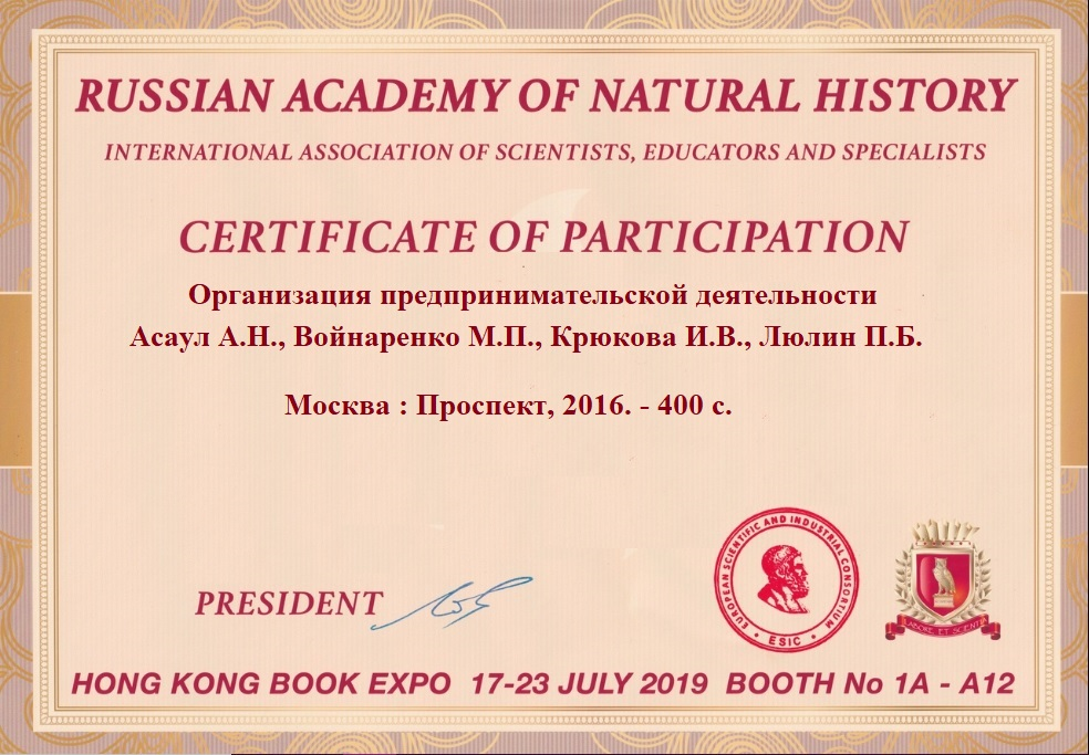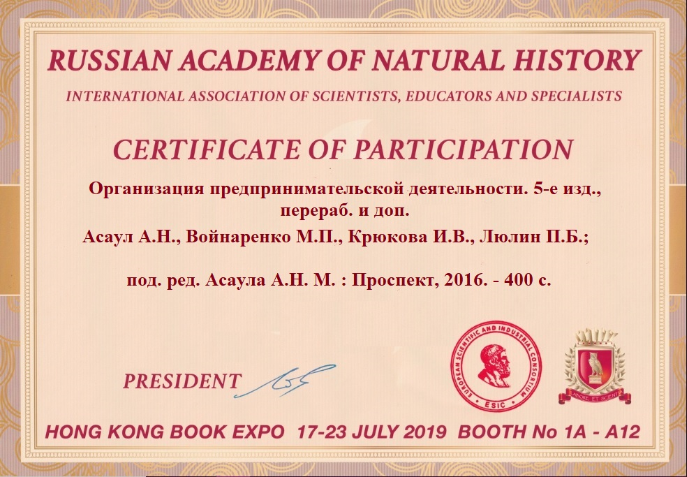 - Асаул А.Н., Войнаренко М.П., Крюкова И.В., Люлин П.Б. Организация предпринимательской деятельности