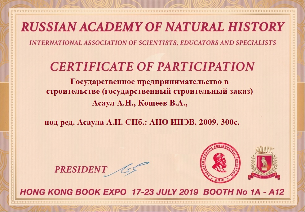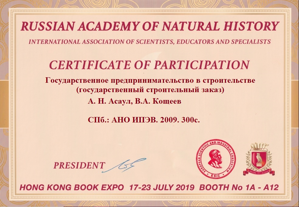 - Асаул А.Н., Кощеев В.А., под ред. Асаула А.Н. Государственное предпринимательство в строительстве (государственный строительный заказ)