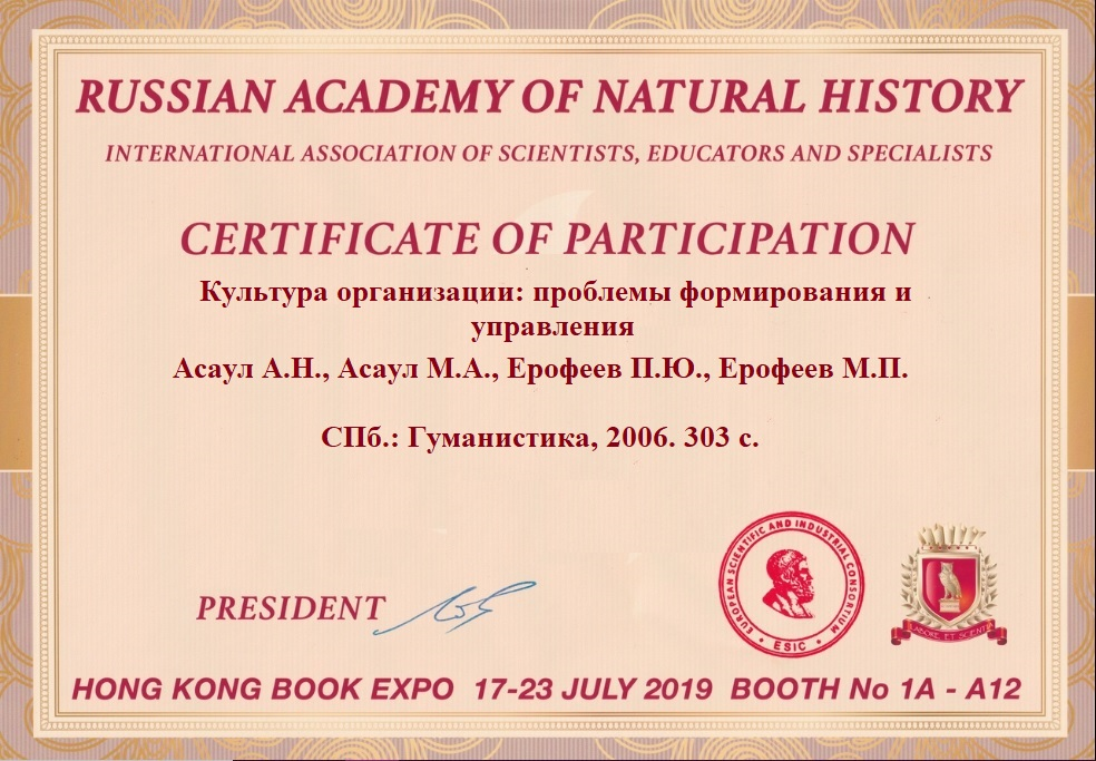 - Асаул А.Н., Асаул М.А., Ерофеев П.Ю., Ерофеев М.П. Культура организации: проблемы формирования и управления