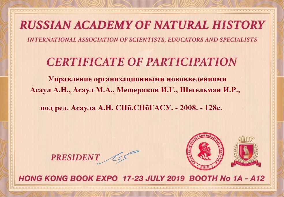- Асаул А.Н., Асаул М.А., Мещеряков И.Г., Шегельман И.Р., под ред. Асаула А.Н. Управление организационными нововведениями