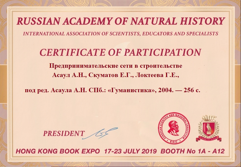 - Асаул А.Н., Скуматов Е.Г., Локтеева Г.Е., под ред. Асаула А.Н. Предпринимательские сети в строительстве