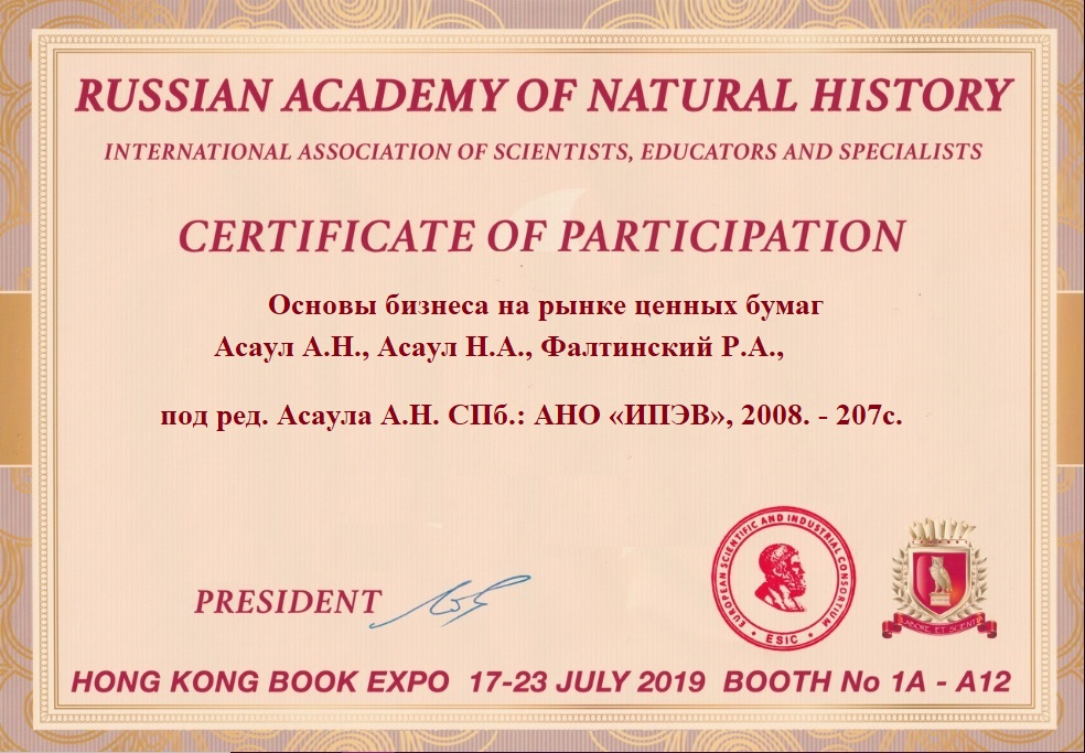 - Асаул А.Н., Асаул Н.А., Фалтинский Р.А., под ред. Асаула А.Н. Основы бизнеса на рынке ценных бумаг