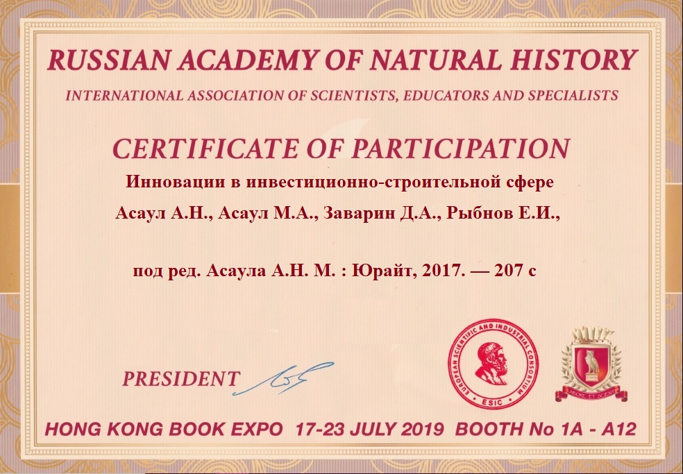 - Асаул А.Н., Асаул М.А., Заварин Д.А., Рыбнов Е.И., под ред. Асаула А.Н. Инновации в инвестиционно-строительной сфере