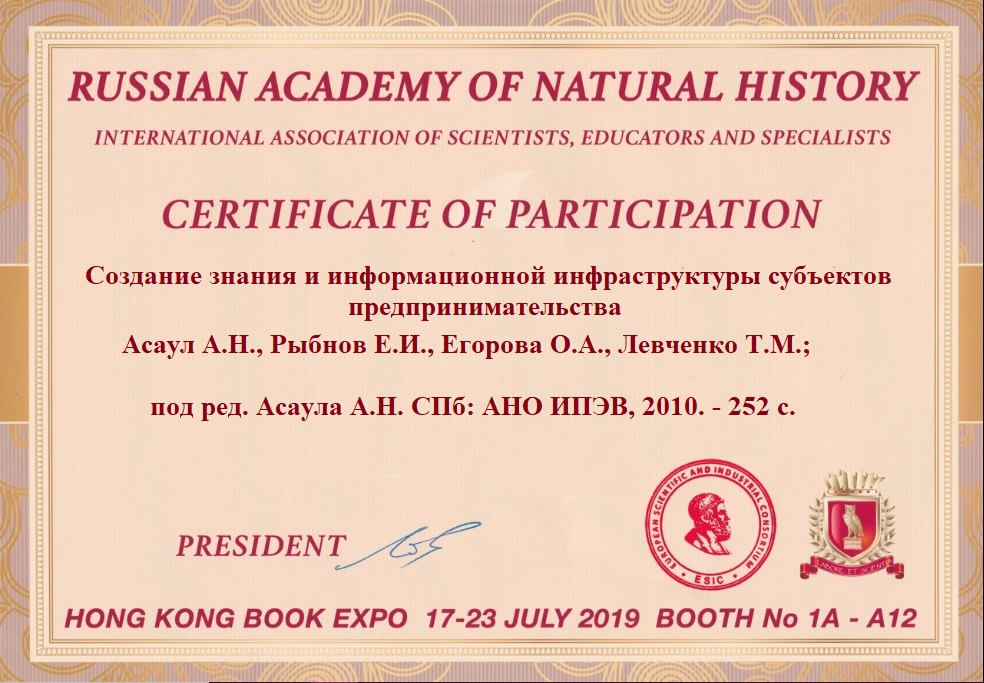- Асаул А.Н., Рыбнов Е.И., Егорова О.А., Левченко Т.М.; под ред. Асаула А.Н. Создание знания и информационной инфраструктуры субъектов предпринимательства