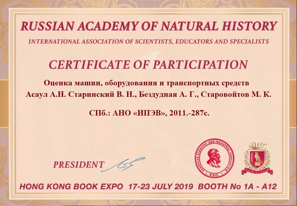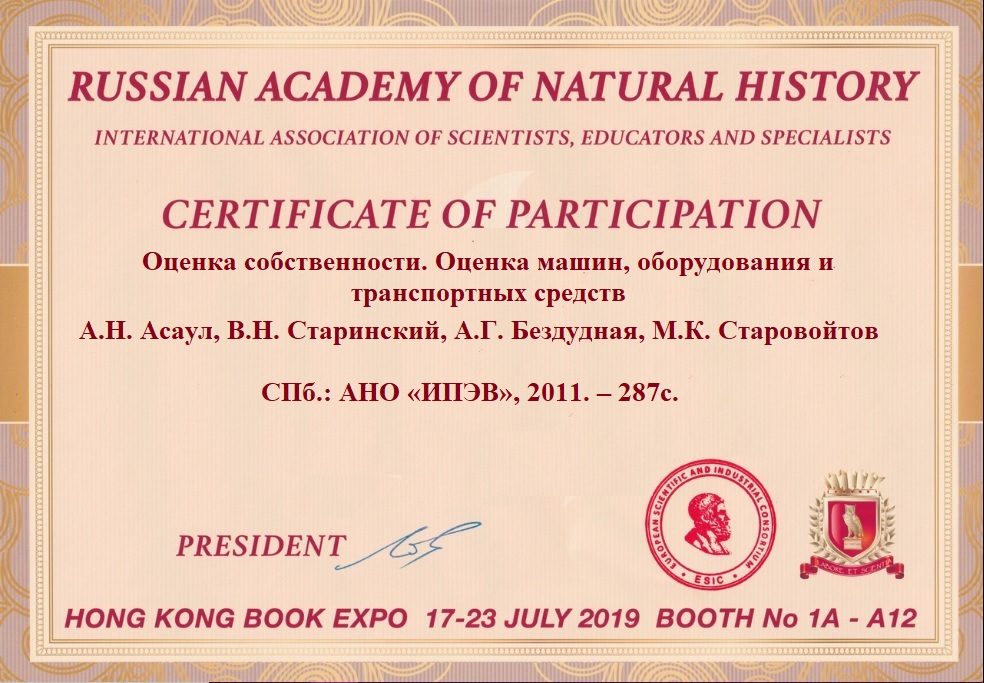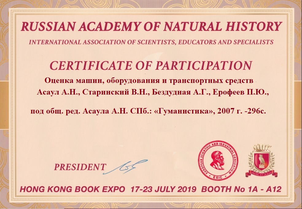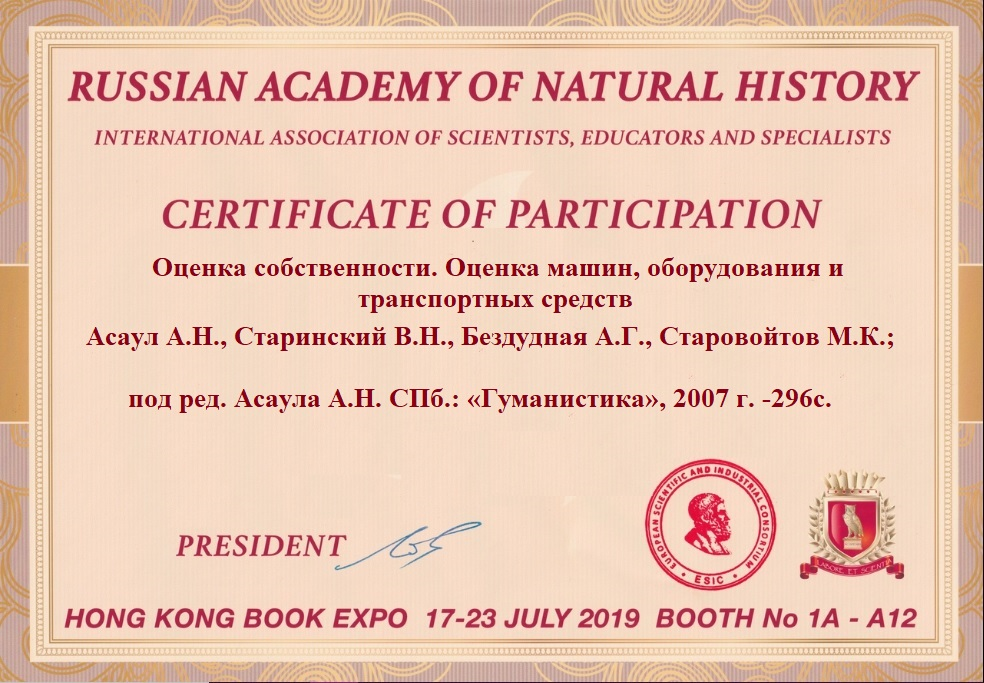 - Асаул А.Н., Старинский В.Н., Бездудная А.Г., Ерофеев П.Ю., под общ. ред. Асаула А.Н. Оценка машин, оборудования и транспортных средств
