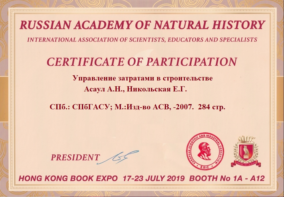 - Асаул А.Н., Никольская Е.Г. Управление затратами в строительстве