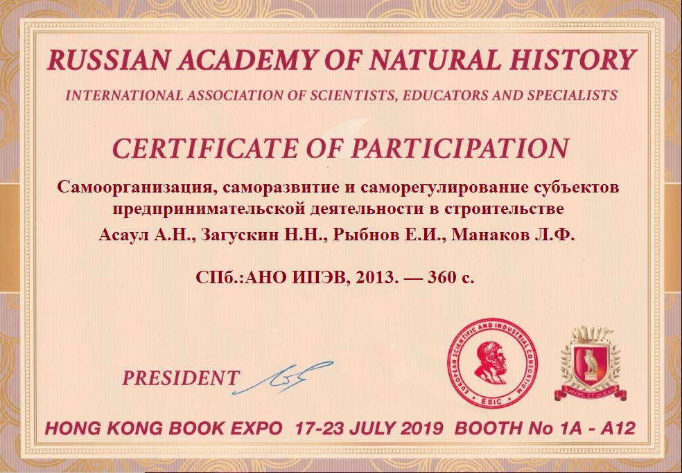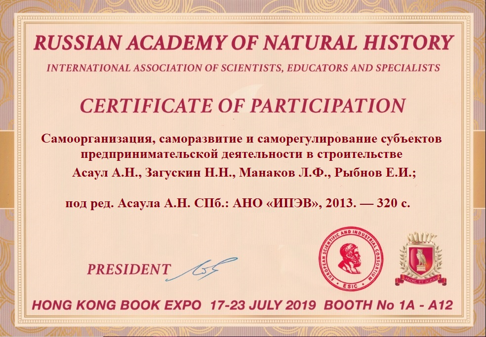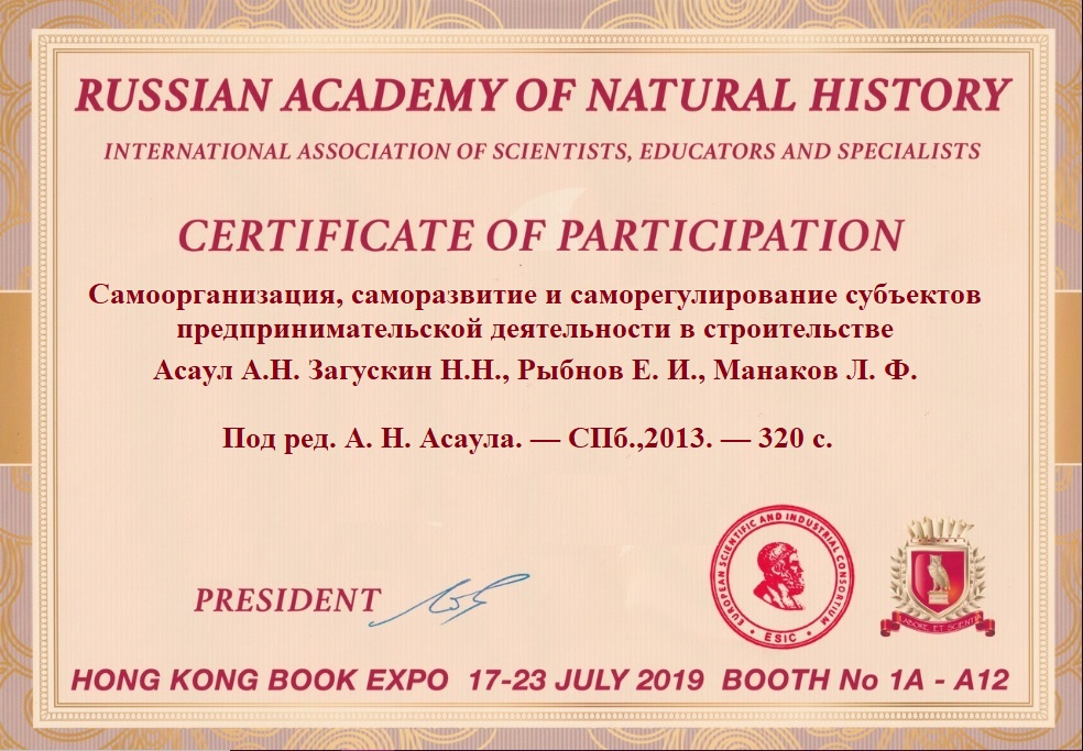 - Асаул А.Н., Загускин Н.Н., Манаков Л.Ф., Рыбнов Е.И.; под ред. Асаула А.Н. Самоорганизация, саморазвитие и саморегулирование субъектов предпринимательской деятельности в строительстве