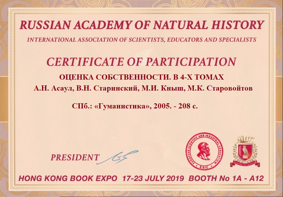 - А.Н. Асаул, В.Н. Старинский, М.И. Кныш, М.К. Старовойтов ОЦЕНКА СОБСТВЕННОСТИ. В 4-Х ТОМАХ