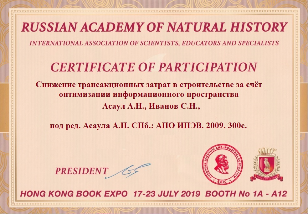 - Асаул А.Н., Иванов С.Н., под ред. Асаула А.Н. Снижение трансакционных затрат в строительстве за счёт оптимизации информационного пространства