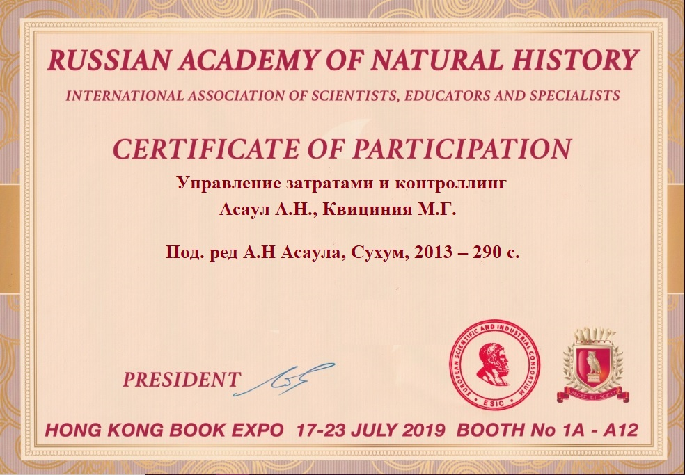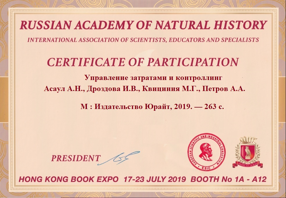 - Асаул А.Н., Дроздова И.В., Квициния М.Г., Петров А.А. Управление затратами и контроллинг