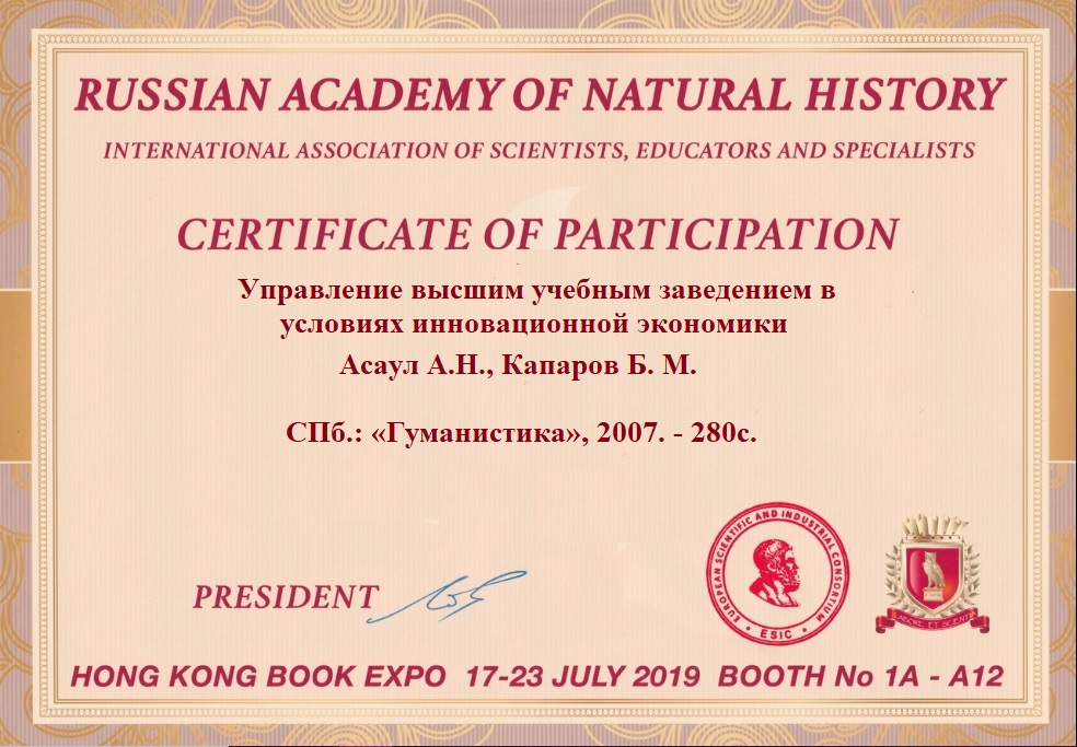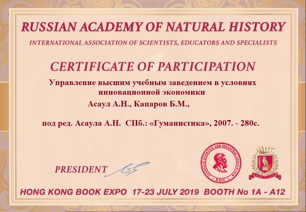 - Асаул А.Н., Капаров Б.М., под ред. Асаула А.Н. Управление высшим учебным заведением в условиях инновационной экономики