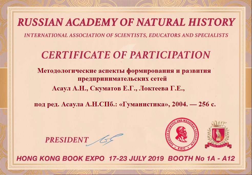 - Асаул А.Н., Скуматов Е.Г., Локтеева Г.Е., под ред. Асаула А.Н. Методологические аспекты формирования и развития предпринимательских сетей