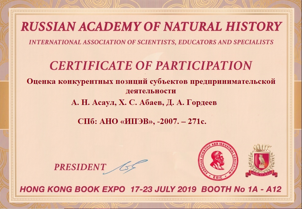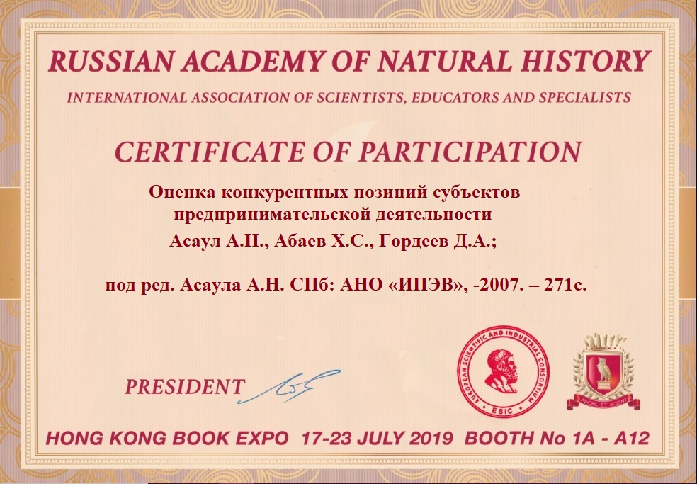 - А. Н. Асаул, Х. С. Абаев, Д. А. Гордеев Оценка конкурентных позиций субъектов предпринимательской деятельности