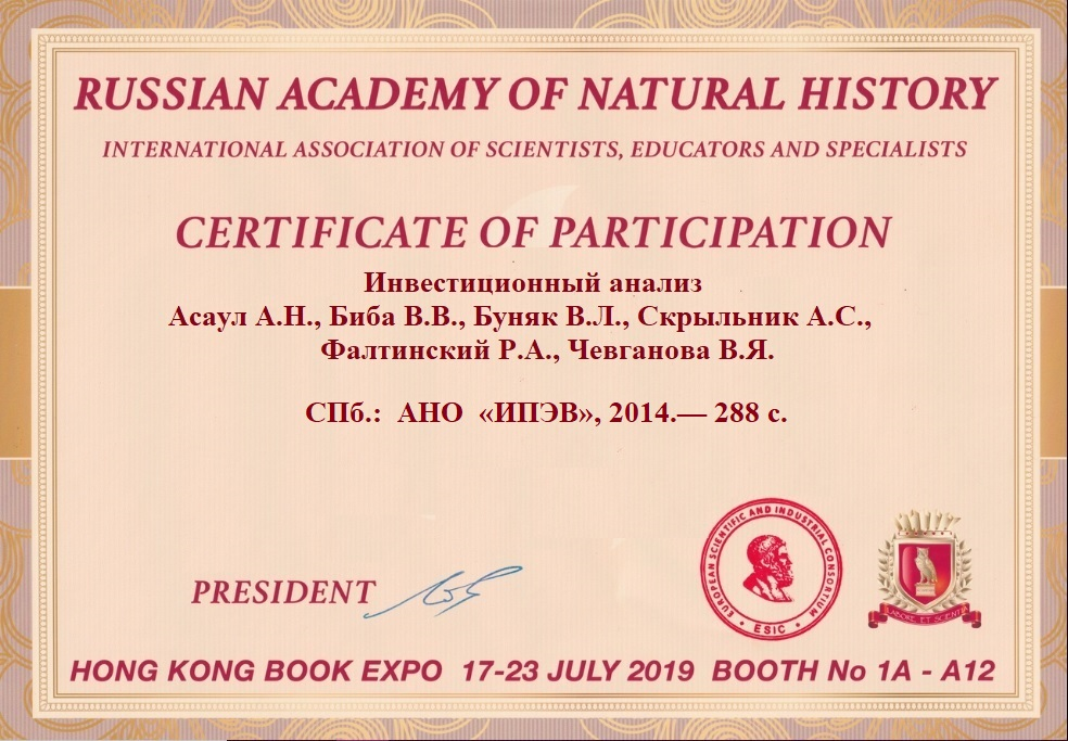 - Асаул А.Н., Биба В.В., Буняк В.Л., Скрыльник А.С., Фалтинский Р.А., Чевганова В.Я., под ред. Асаула А.Н. Инвестиционный анализ