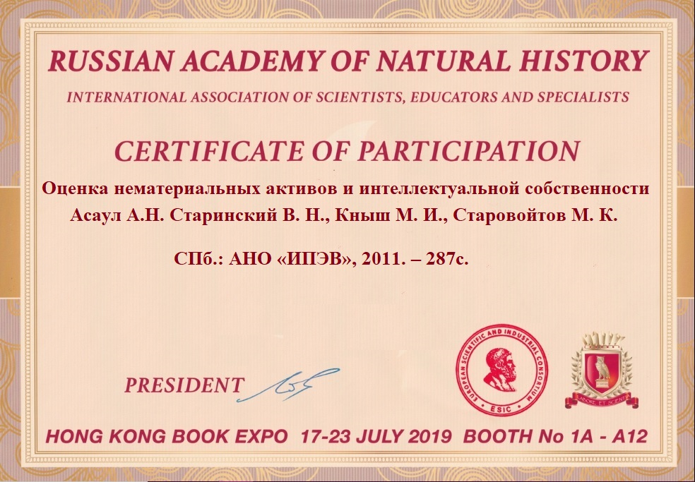 - Асаул А.Н., Старинский В.Н., Кныш М.И., Старовойтов М.К., под ред. Асаула А.Н. Оценка собственности. Оценка нематериальных активов и интеллектуальной собственности
