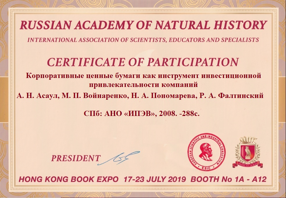 - Асаул А.Н., Войнаренко М.П., Пономарева Н.А., Фалтинский Р.А., под ред. Асаула А.Н. Корпоративные ценные бумаги как инструмент инвестиционной привлекательности компаний