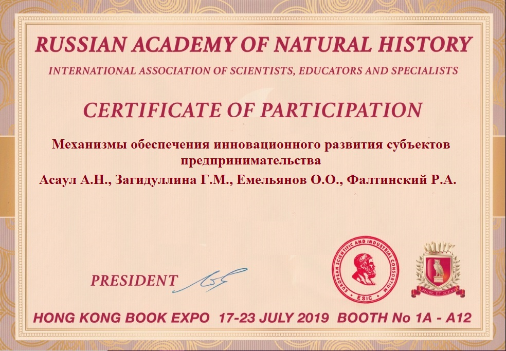 - Асаул А.Н., Загидуллина Г.М., Емельянов О.О., Фалтинский Р.А. Механизмы обеспечения инновационного развития субъектов предпринимательства