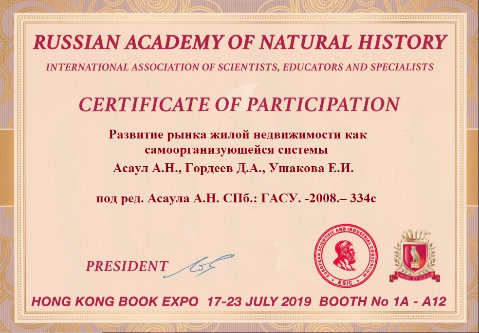 - Асаул А.Н., Гордеев Д.А., Ушакова Е.И.; под ред. Асаула А.Н. Развитие рынка жилой недвижимости как самоорганизующейся системы