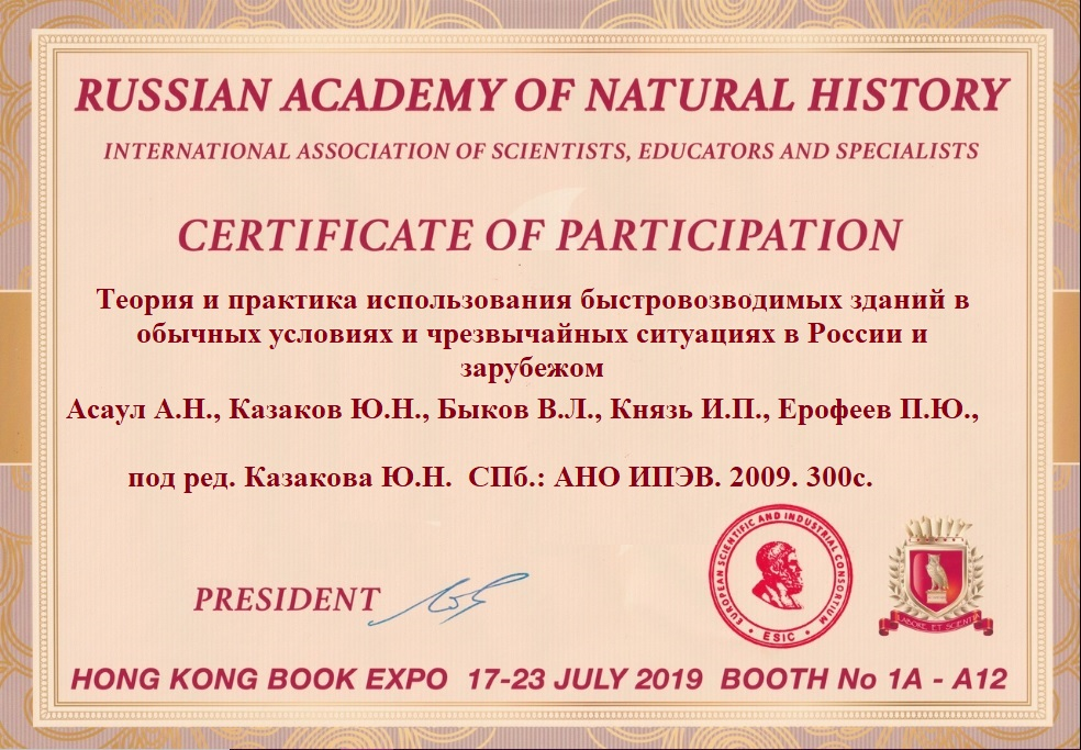 - Асаул А.Н., Казаков Ю.Н., Быков В.Л., Князь И.П., Ерофеев П.Ю., под ред. Казакова Ю.Н. Теория и практика использования быстровозводимых зданий в обычных условиях и чрезвычайных ситуациях в России и зарубежом