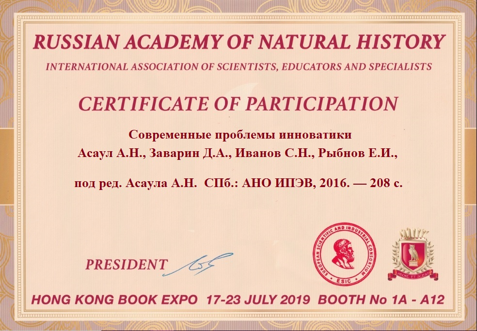 - Асаул А.Н., Заварин Д.А., Иванов С.Н., Рыбнов Е.И., под ред. Асаула А.Н. Современные проблемы инноватики