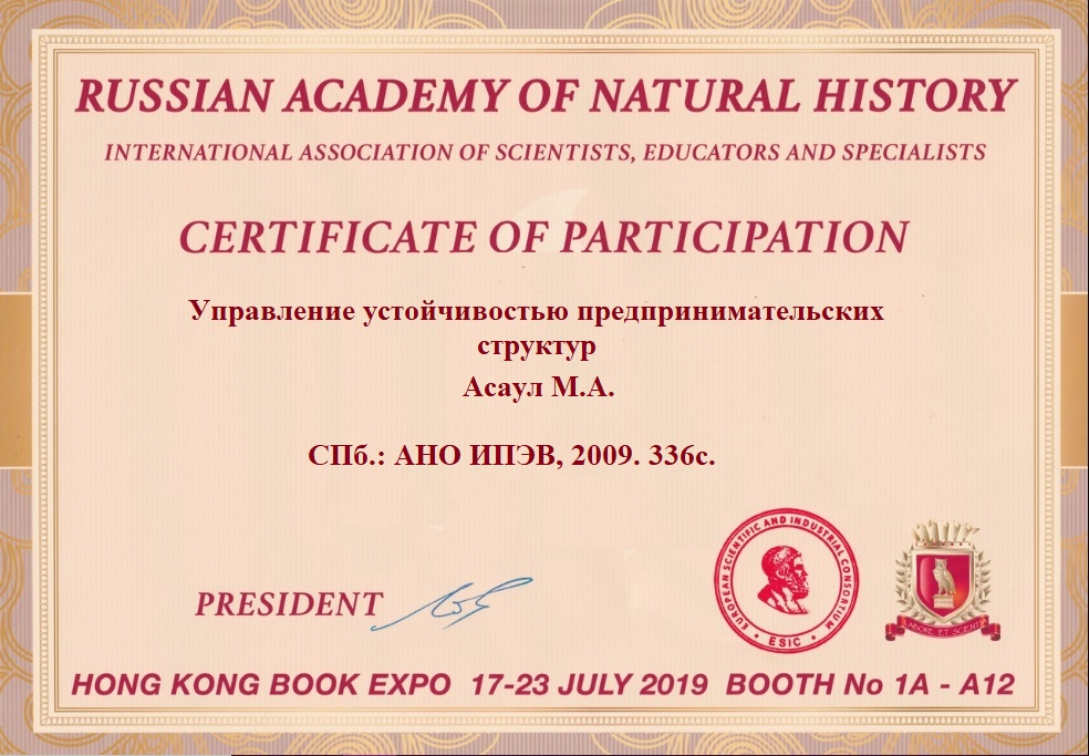 - Асаул М.А. Управление устойчивостью предпринимательских структур
