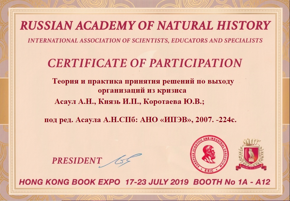 - А. Н. Асаул, И. П. Князь, Ю. В. Коротаева Теория и практика принятия решений по выходу организации из кризиса