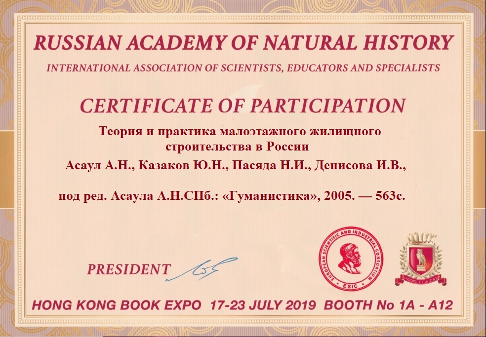 - Асаул А.Н., Казаков Ю.Н., Пасяда Н.И., Денисова И.В., под ред. Асаула А.Н. Теория и практика малоэтажного жилищного строительства в России