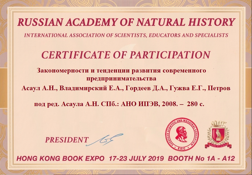 - Асаул А.Н., Владимирский Е.А., Гордеев Д.А., Гужва Е.Г., Петров А.А., Фалтинский Р.А., под ред. Асаула А.Н. Закономерности и тенденции развития современного предпринимательства