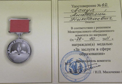 В 2011 г. награждён медалью «За заслуги в сфере образования».