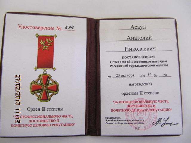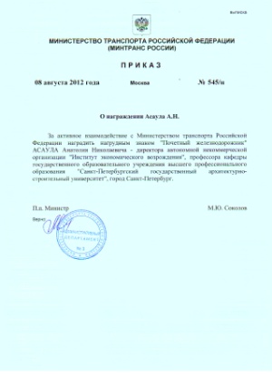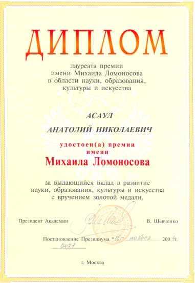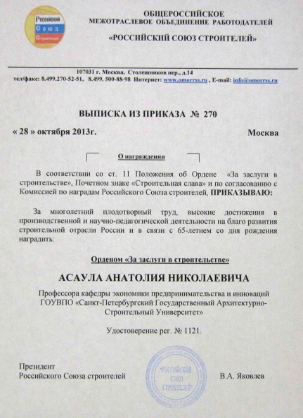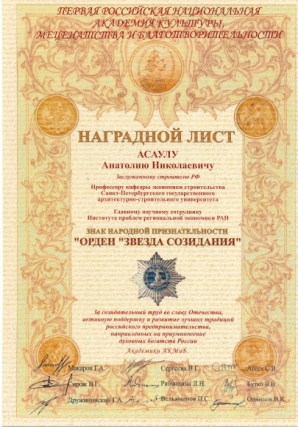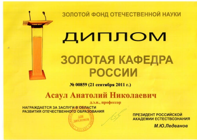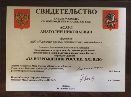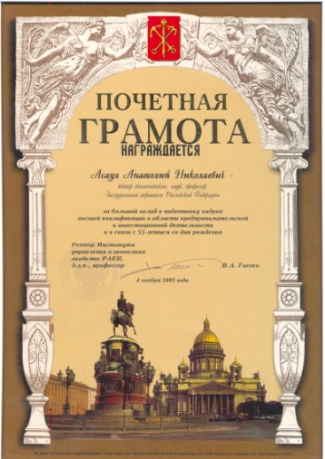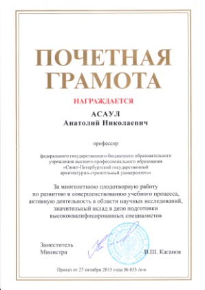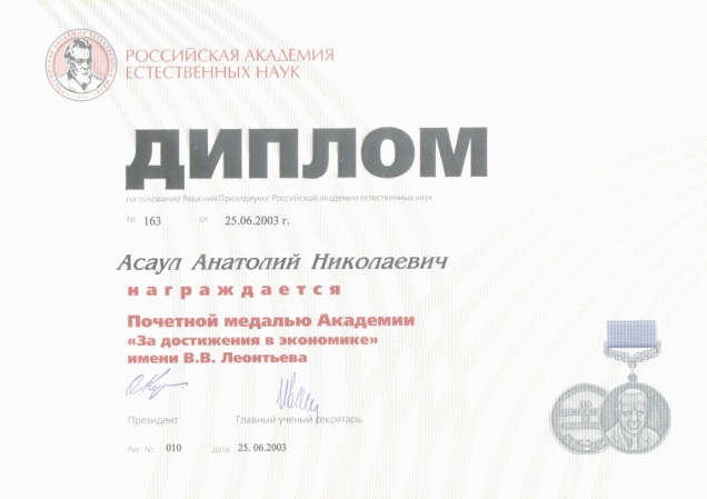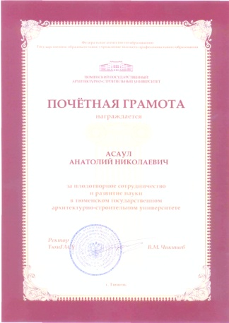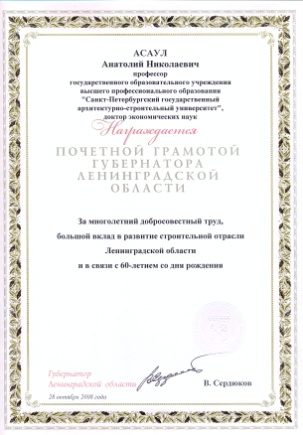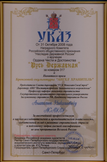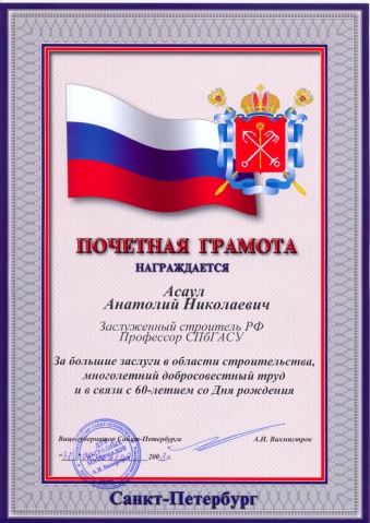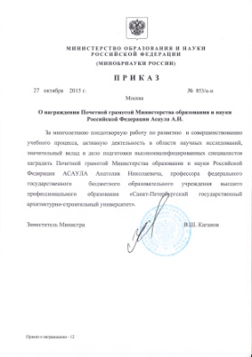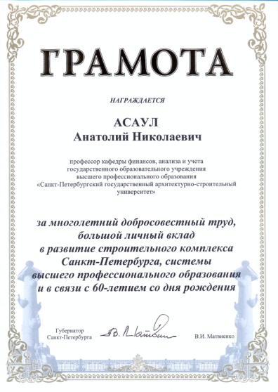 Признание трудовых и научных заслуг профессора Асаула А.Н.: