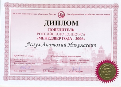 В 2007 г. абсолютный победитель российского конкурса «Менеджер года-2006».