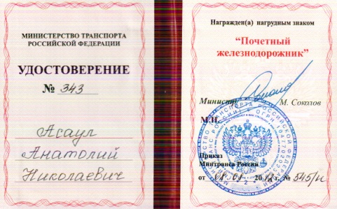 В 2012 г. награждён нагрудным знаком «почётный железнодорожник» за активное взаимодействие с Министерством транспорта Российской Федерации.