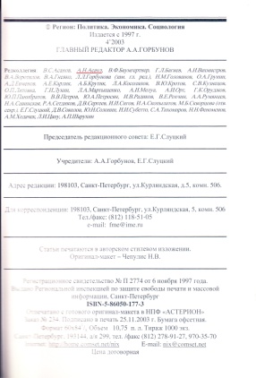 "Регион: экономика, политика, социология" г.Санкт-Петербург (2001 - по настоящее время).