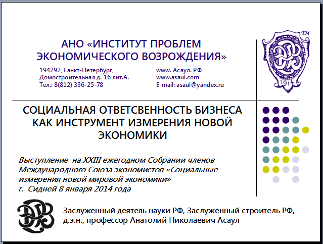 С 7-го по 17-е января 2014 года в Сиднее (Австралия) проходило XXIII ежегодное Собрание членов Международного Союза экономистов.