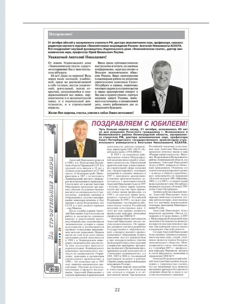 Юбилей 60-летия профессора А.Н.Асаула