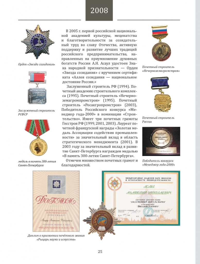 Международные признания научной деятельности профессора А.Н. Асаула